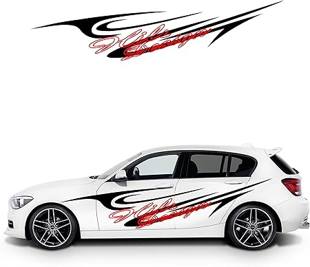 Amazon 車 ステッカー かっこいい スポーツ バイナルグラフィック サイド デカール 車用 カスタム ワイルドスピード系 選べる8色 左右セット Scc05 ブラック ステッカー デカール 車 バイク
